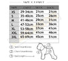 ***NOTE: All of our clothing fits smaller than normal North American sizes.  Every style in our catalogue fits differently. Please measure your dog and refer to corresponding size chart for proper fitment.  Chest circumference is the most important measurement.  For pets with lots of fur, please size up one to compensate for the fur and comfortability.