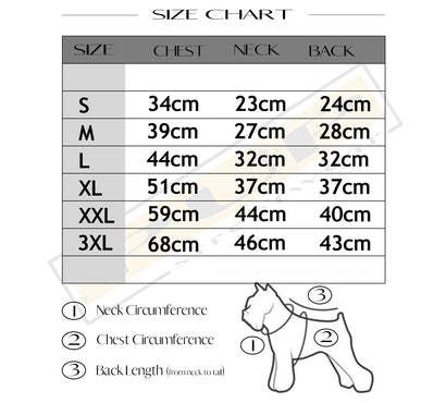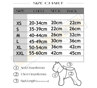 ***NOTE: Please measure your pet and refer to corresponding size chart for proper fitment. For pets with lots of fur, please size up one to compensate for the fur and comfortability.